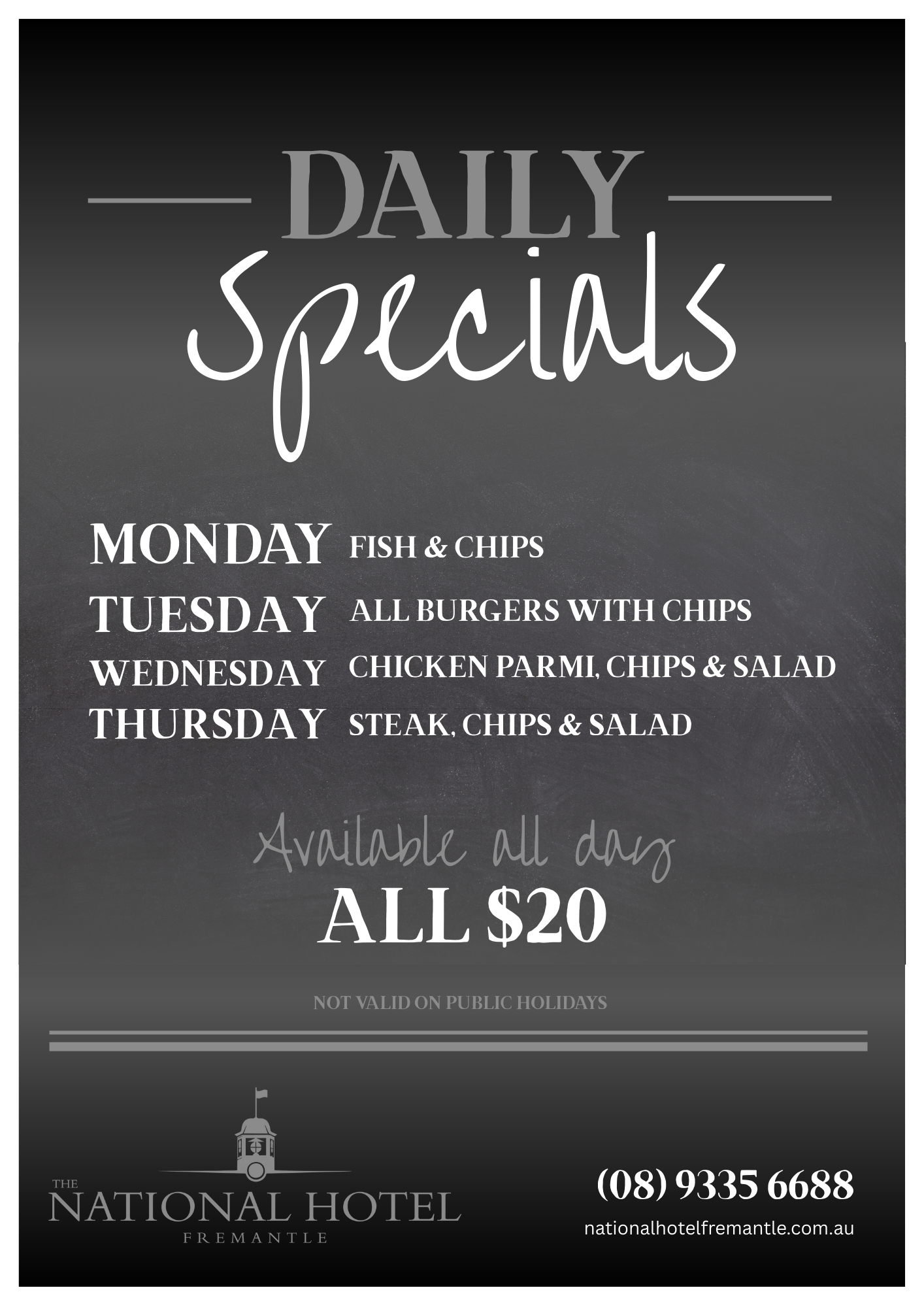- E-mail:bookings@nationalhotelfremantle.com.au