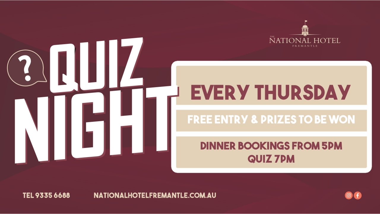 Think you're clever, do ya? Then quiz night at The National Hotel is made for you! Bring your friends along, enjoy some delicious food and kick back with a pint whilst we challenge your knowledge.